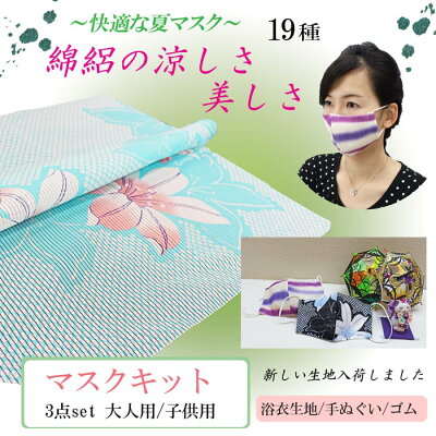 【2個制作可能!】【綿絽生地】手作りマスクキット 涼しい 夏マスク 花柄 綿絽 浴衣生地×白地手ぬぐい×ゴム セット マスク 洗える 浴衣 ゆかた 風邪対策 ハンドメイド 手芸 作り方レシピ・型紙付