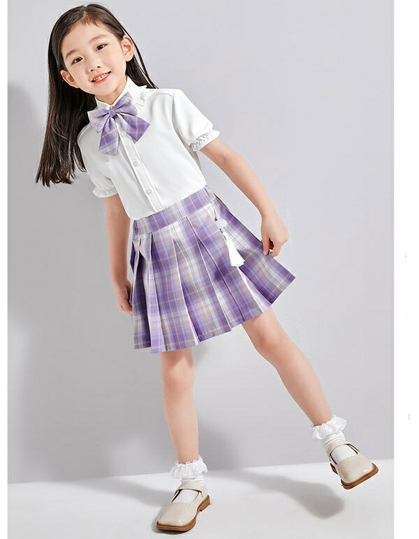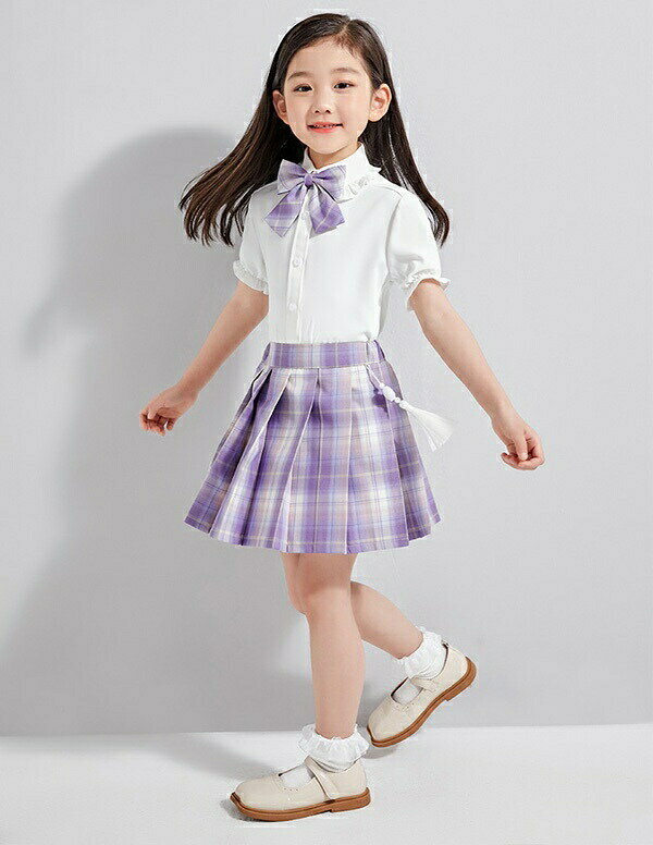 キッズスーツ 女の子 キッズフォーマル 卒業式スーツ 卒業式 チェック柄 プリーツスカート スカパン 半袖 白シャツ パープル 小学生 小学校 お受験 発表会 3点セット オシャレ 入園式 卒園式 発表会 通学 子ども服 110 120 130 140 150 160 170