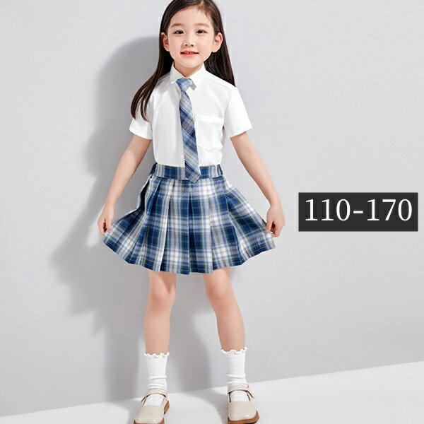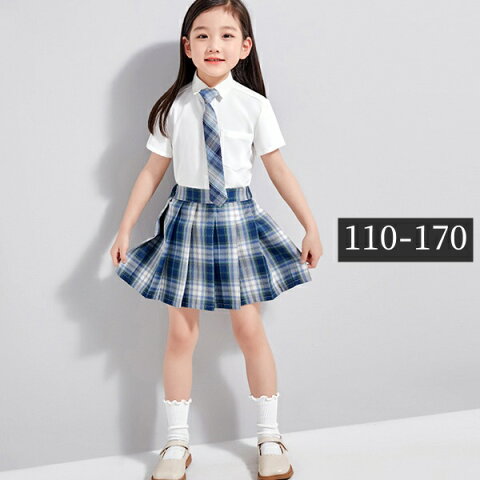 キッズスーツ 女の子 キッズフォーマル 卒業式スーツ チェック柄 プリーツスカート スカパン 半袖 白シャツ ブルー ネイビー 小学生 小学校 お受験 発表会 3点セット オシャレ 入園式 卒園式 発表会 通学 子ども服 110 120 130 140 150 160 170