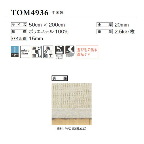 【キッチン・玄関マット】東リ 高級ラグマット キッチンマット 50×200cm TOM4936__tom4936