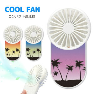 No107 サンセット モバイルファン 扇風機 USB充電式 ストラップホール付き ミニ扇風機 クールファン ハンディーファン 熱中症対策 ポータブル 風量切替 ミニファン 小型 グッズ コンパクト 手持ち グラデーション ハワイアン 海 南国 夏 ヤシの木 夕焼け d:fas
